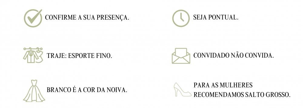 Gostaríamos muito de contar com a sua presença no momento em que nossa união será abençoada diante de Deus! A cerimônia será rápida e tentaremos ser extremamente pontuais. Dia 08 de novembro de 2025, às 16h no Sítio Colinas do Hebron. A recepção será no mesmo local. Te vemos lá!